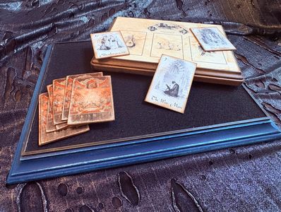 In addition to our standard boxes, cards, and effects, we also make custom talking boards, close-up performance mats, pendulum boards, Tarot reading boards, cabinet cards, etc.